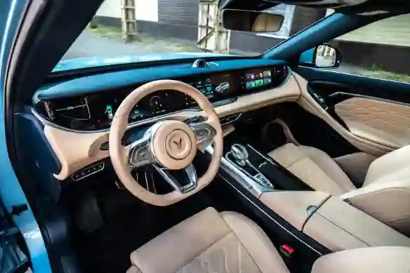 Салон в Voyah Free создан, чтобы впечатлять. Одна только верхняя часть торпедо, поднимающаяся, открывая огромный экран, когда включается зажигание, заставляет восторженно выдохнуть. Выдыхайте, друзья, выдыхайте. Тут много интересного и удивительного.